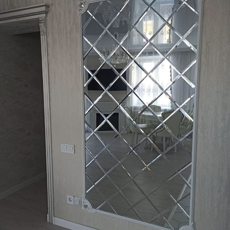 Использована серебристая квадратная зеркальная плитка 18х18.