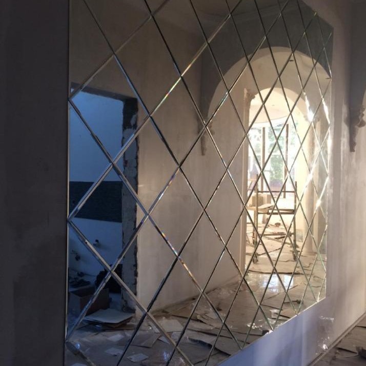 Использована зеркальная квадратная и треугольная плитка с фацетом.