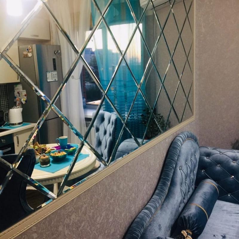 Использована зеркальная плитка "вытянутый ромб" с фацетом.